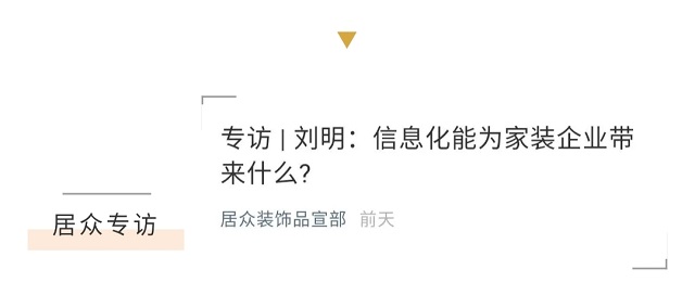 前天,居眾裝飾品宣部發(fā)了一篇標題為“信息化能為家裝企業(yè)帶來什么”的專訪。